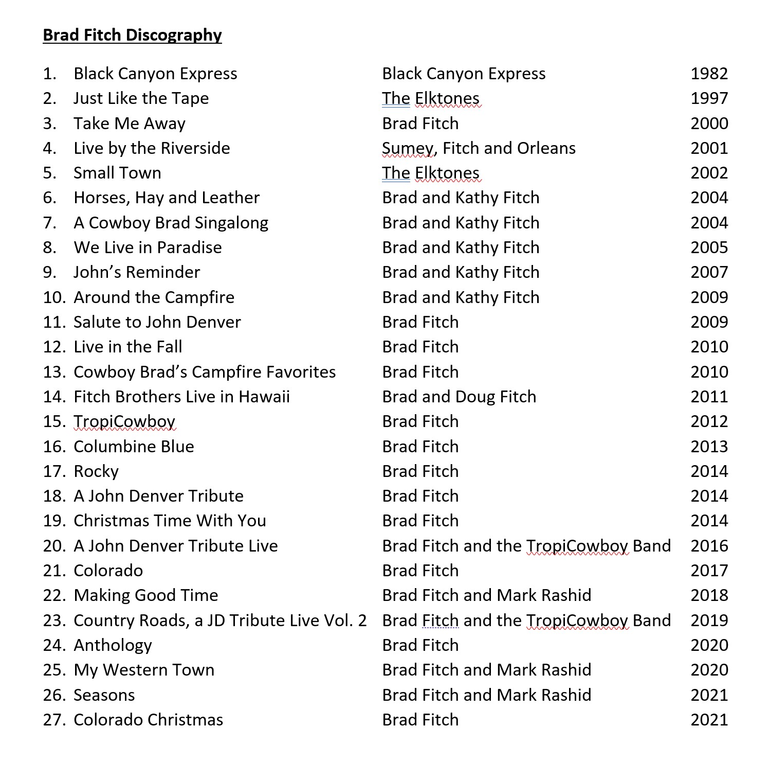 Brad Fitch: voice, six and 12-string guitars, bass, mandolin, ukulele, percussion.